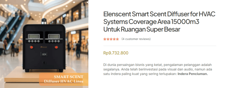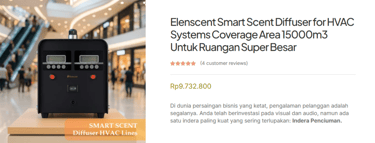 Klien kami, sebuah klinik kecantikan terkemuka, menghadapi tantangan dalam pengadaan Elenscent Smart Scent Diffuser. Produk serupa di pasaran lokal dibanderol dengan harga yang sangat tinggi, mencapai Rp9.732.800. Nilai investasi sebesar ini sangat membebani, terutama jika hanya dialokasikan untuk satu cabang operasional.